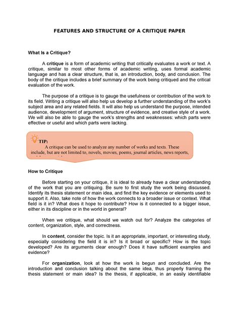 Do more with this rubric: Paper critique summarythe article which was published in tesol journal in 2010 and written by mojica, l. Like an essay a critique uses a formal academic. The complete critique would contain an introduction body and conclusion. Critique article is the paper to make students highlight their evaluation of a particular article, book, statement, etc.